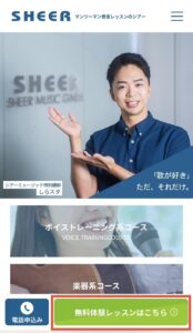 ②緑色の『無料体験レッスンんはこちら』をタップ。