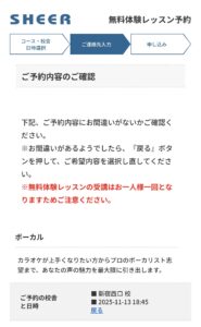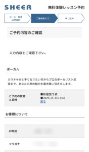 以上で、シアーミュージックの無料体験レッスンの予約は完了です。