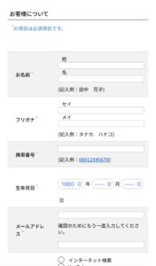 ⑤予約内容を確認してお客様情報を入力し、『入力確認画面へ』をタップ。